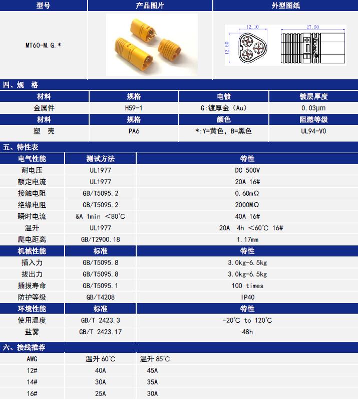 產(chǎn)品說明: Amass三芯MT60適用于三條線同時連接的三芯接法,使用安全、方便,布線整齊。(例如電調(diào)和電機之間的連接,極大的方便了使用。)為了安全方面考慮,本插頭采用緊配設(shè)計.防止飛行期間松動. 產(chǎn)品規(guī)格: MT60-M公頭×1(20.5×12MM) MT60護套×2(13.0×12MM)