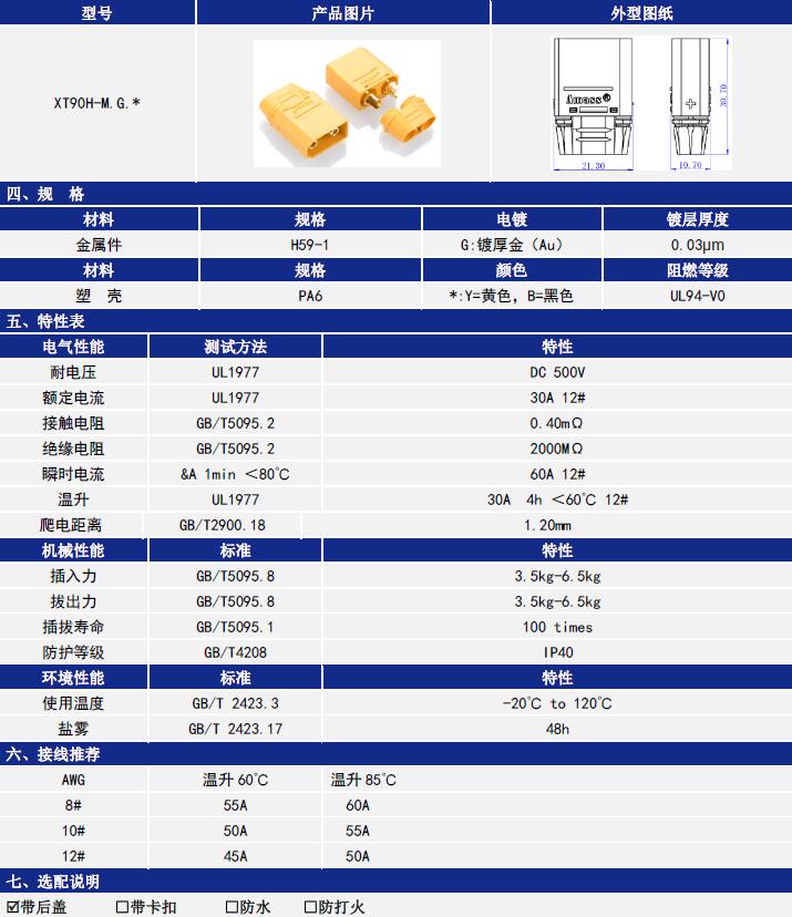 產(chǎn)品名稱:艾邁斯/Amass XT90S升級版防打火鍍金帶護套插頭/一對裝 TL2906