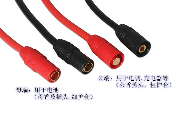 紅色公頭端(帶電阻)+黑色公頭端(無電阻)=連接電子調(diào)速器使用TL2912(公香蕉頭、粗護(hù)套)
