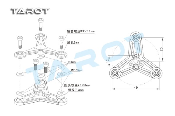 采用6061T6鋁合金全CNC加工,適用于對(duì)稱螺絲孔中心距12mm的各款電機(jī), 三葉折疊槳夾座提供了高效的折疊效果,再轉(zhuǎn)速相同的情況下,有效提升低扭矩馬達(dá)的動(dòng)能轉(zhuǎn)換率,可獲得超過15%的效率提升和更充沛的動(dòng)力儲(chǔ)備。適用于各種四軸、六軸等多軸多旋翼無人飛行器。