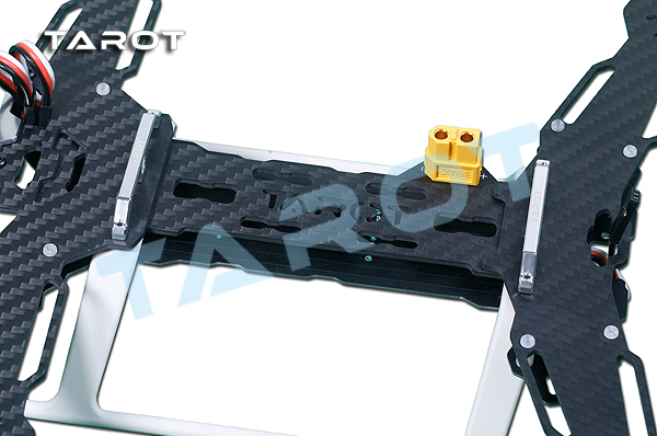 加強(qiáng)框架的金屬CNC零件在充當(dāng)螺母作用時,還巧妙的當(dāng)做電池?fù)跷话,防止摔機(jī)時沖撞其它電子設(shè)備。PCB中間可直接焊接OSD圖像疊加TL300L,無需任何連線。價格低廉的450PRO腳架讓摔機(jī)成本降低到無憂的境界。
