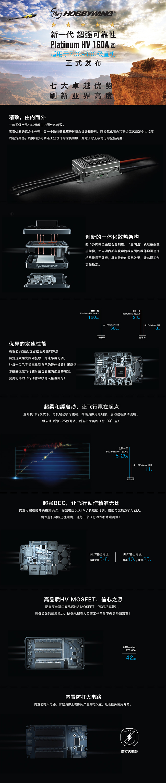 產(chǎn)品名稱:好盈/hobbywing 鉑金/Platinum 高壓電調(diào)6-14S帶BEC/HV-160A-V4