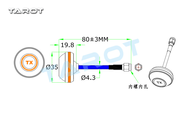 產(chǎn)品名稱:Tarot 天線/三葉蘑菇頭/5.8G圖傳發(fā)射天線 TL300K2