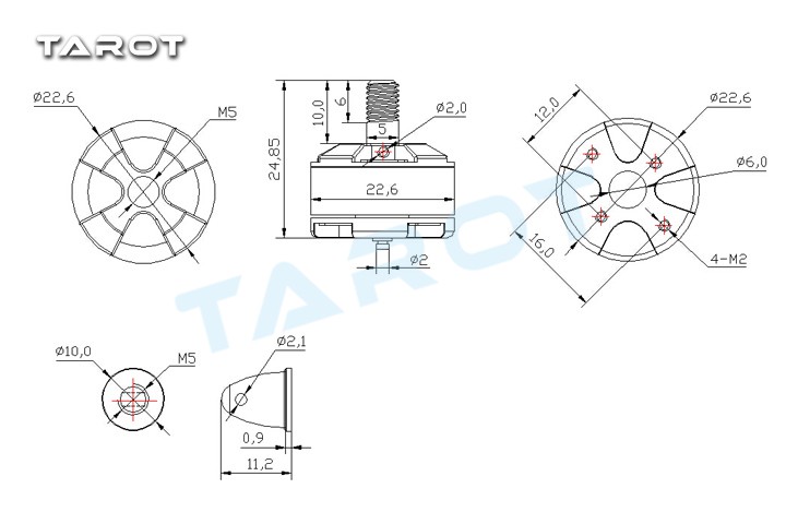 產(chǎn)品名稱:Tarot 無(wú)刷電機(jī)/反螺紋/3S/MT1806II/2280KV-黑帽 TL300H7
