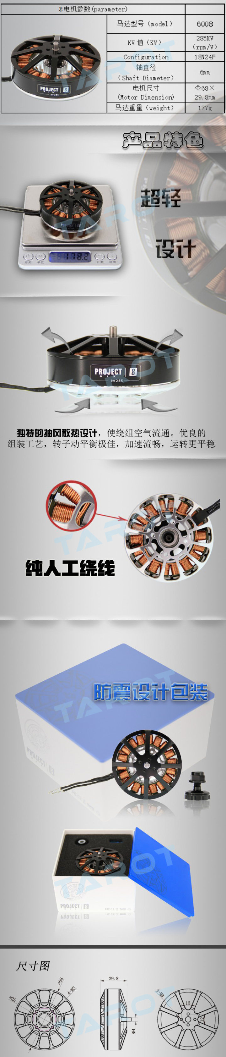 產(chǎn)品名稱(chēng):Tarot 無(wú)刷電機(jī)/多旋翼高效馬達(dá)/6S/6008/285KV TL60P08